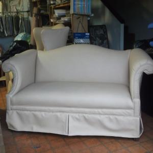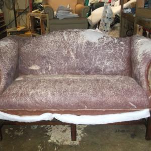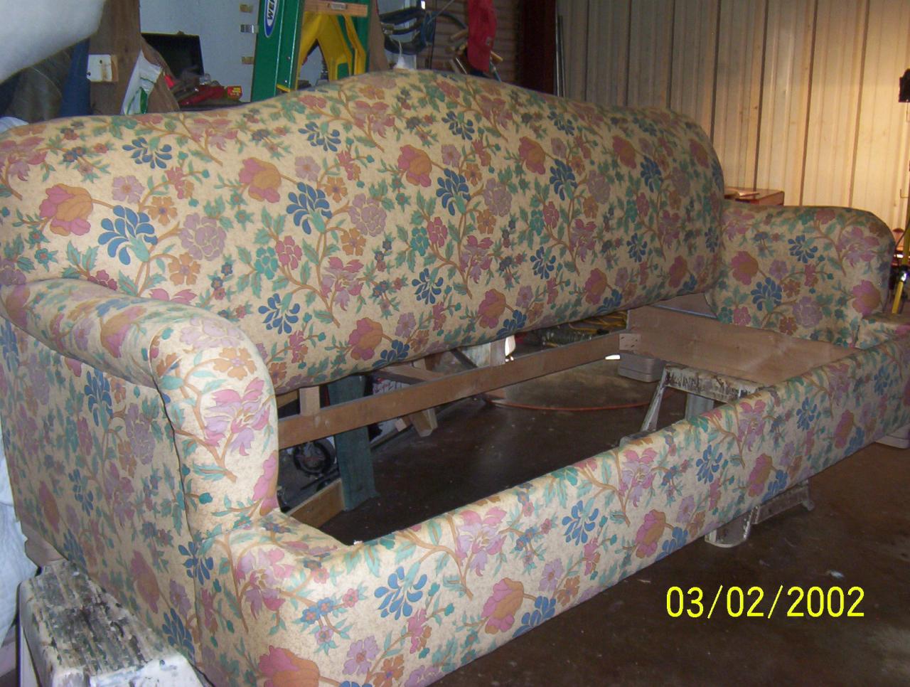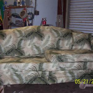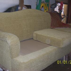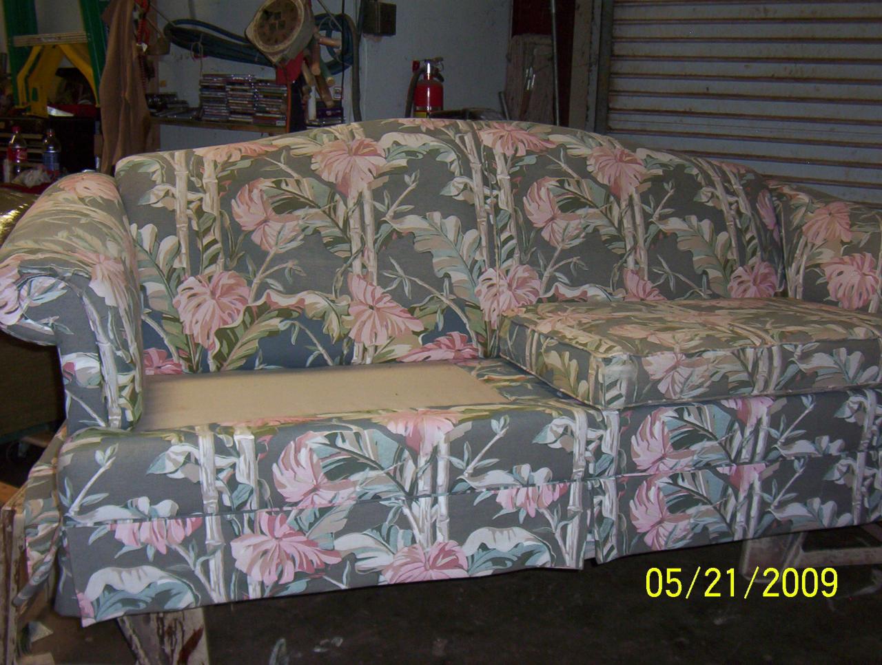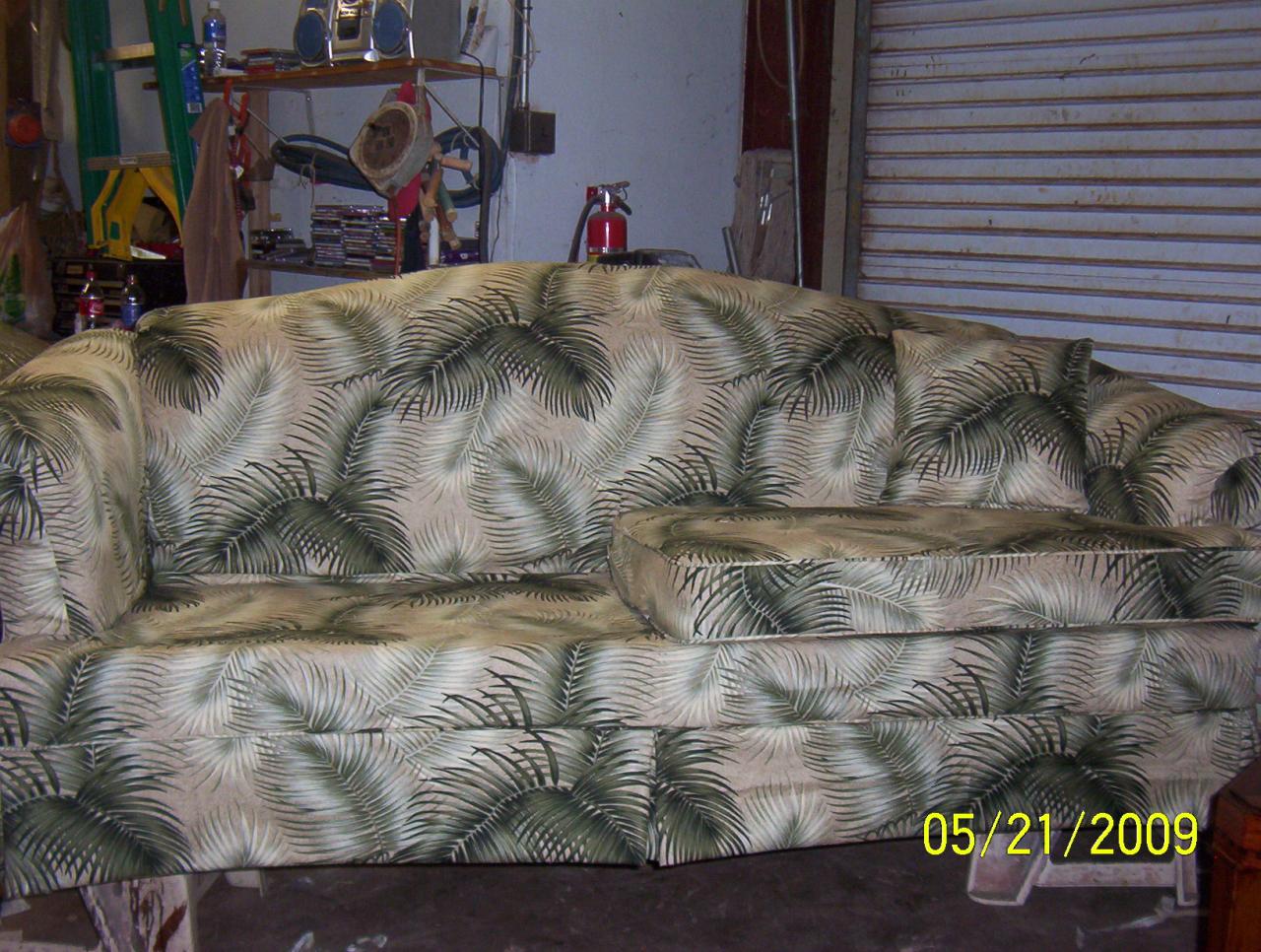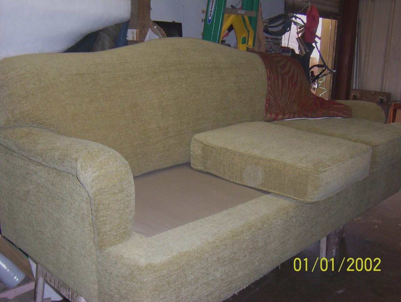 Customer requested to take out the sleeper & replace plywood to converted to make it regular sofa. Re upholster w/ solid green fabric.