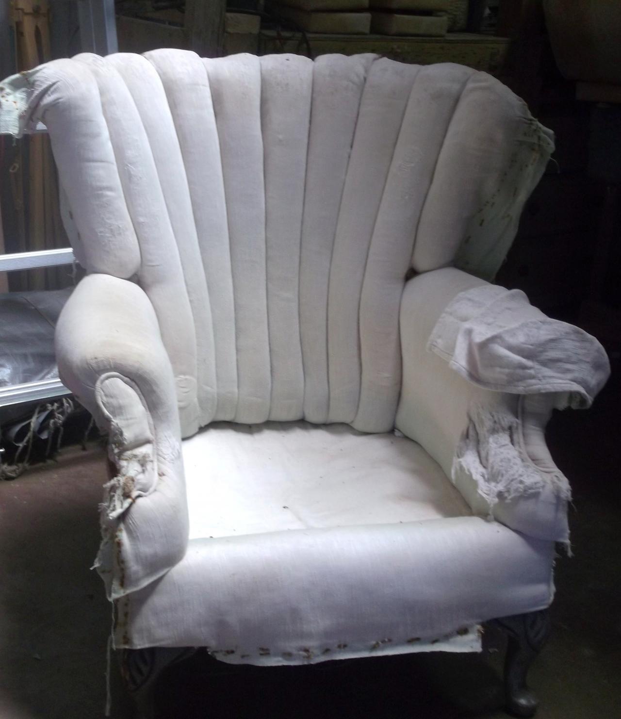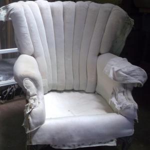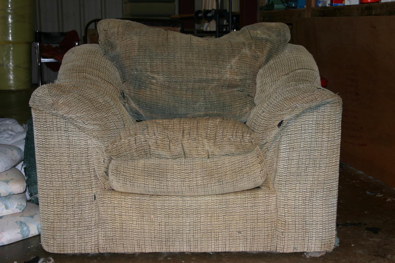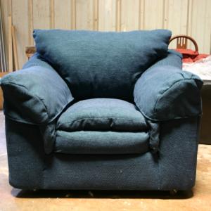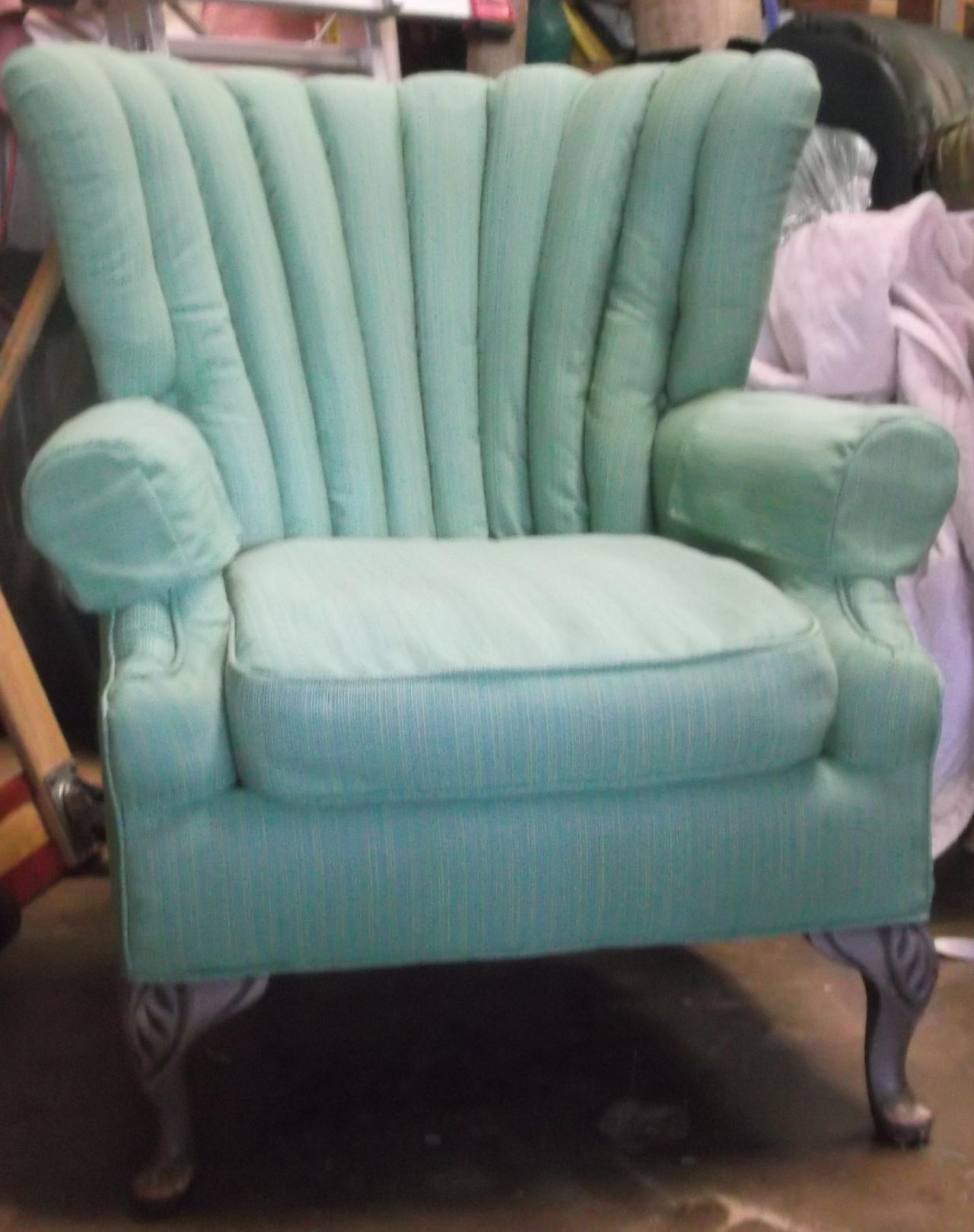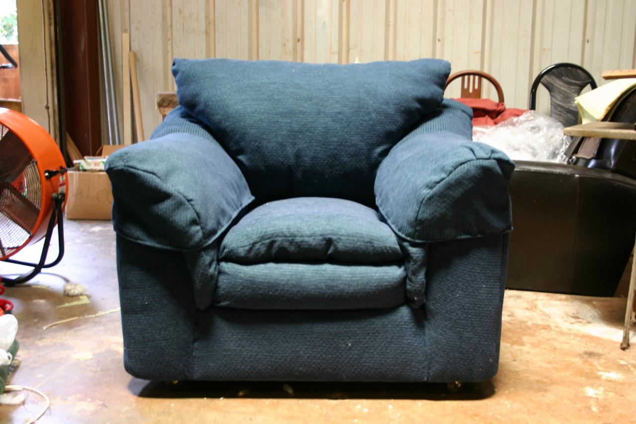 (before look) Over size fully upholster chair blue fabric faded turn to brown color, all the stuffing needed to change. Totally needed help.