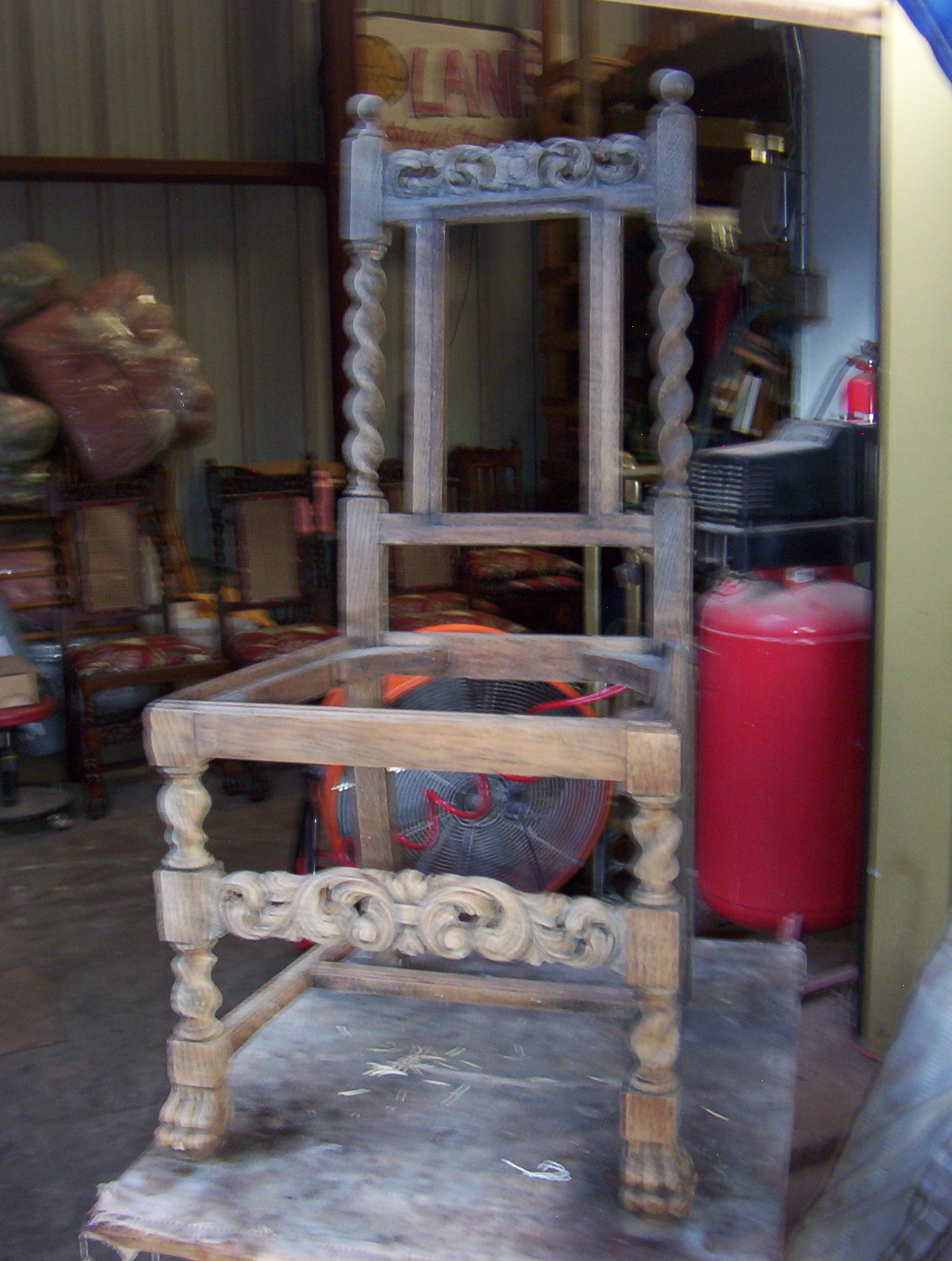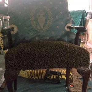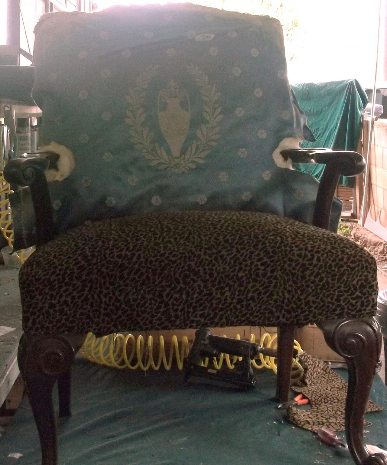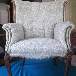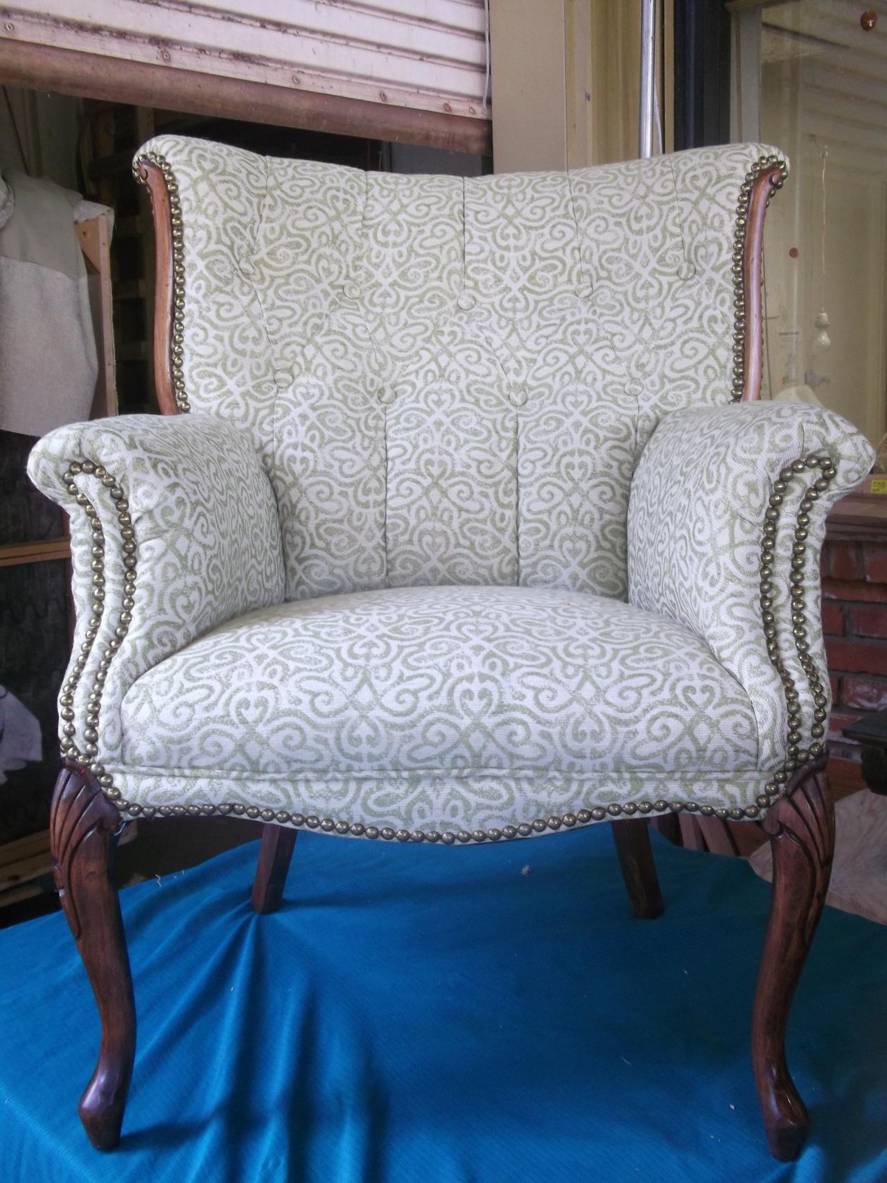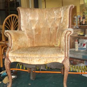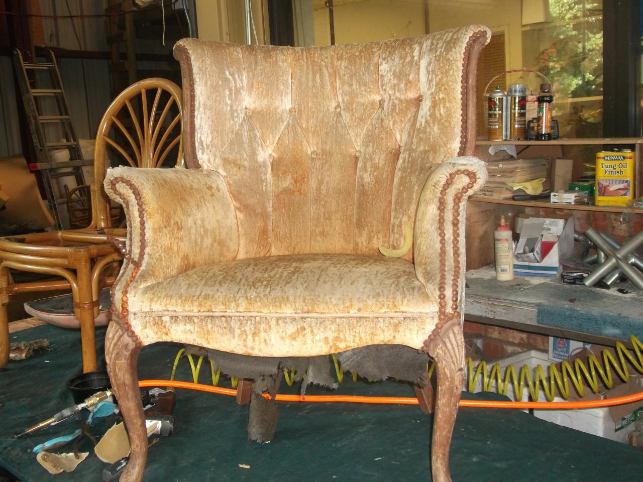 (before look) Over size fully upholster chair blue fabric faded turn to brown color, all the stuffing needed to change. Totally needed help.