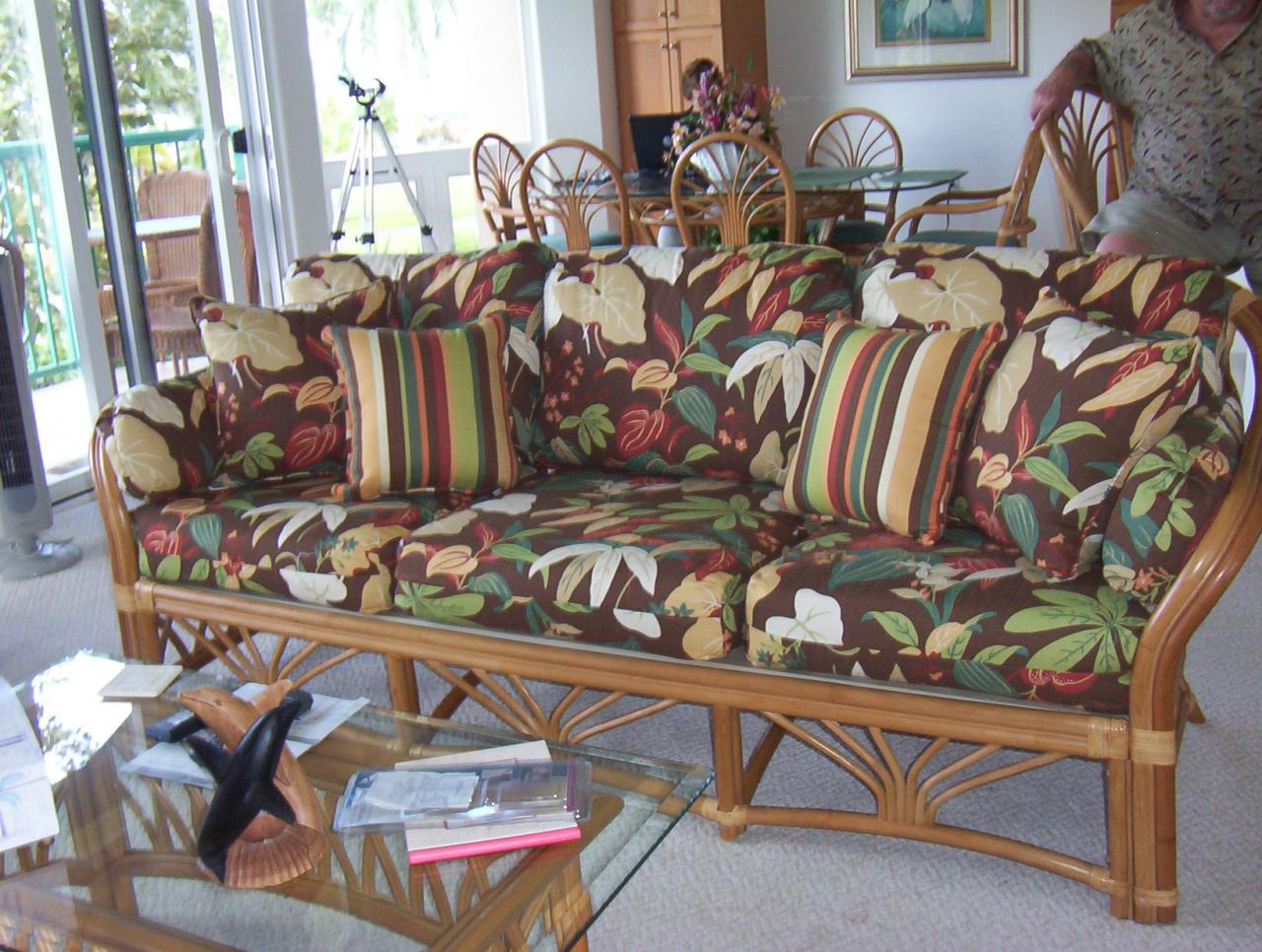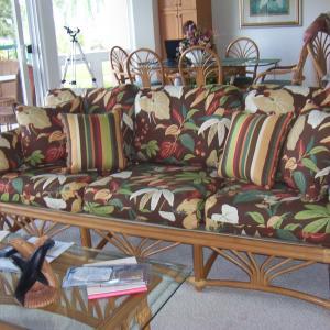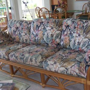 Blue faded sofa needed only slip cover for easy to take off & wash for rental unit in Wailua Homestead.