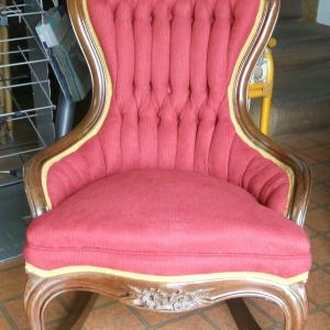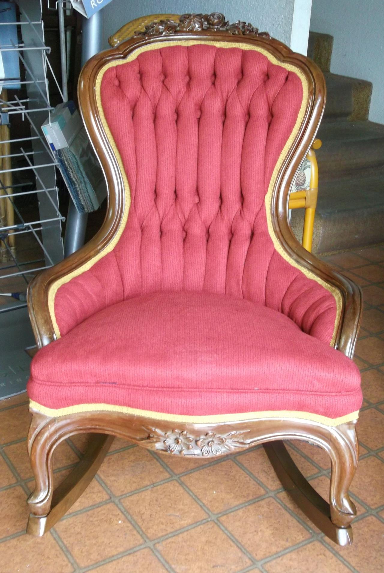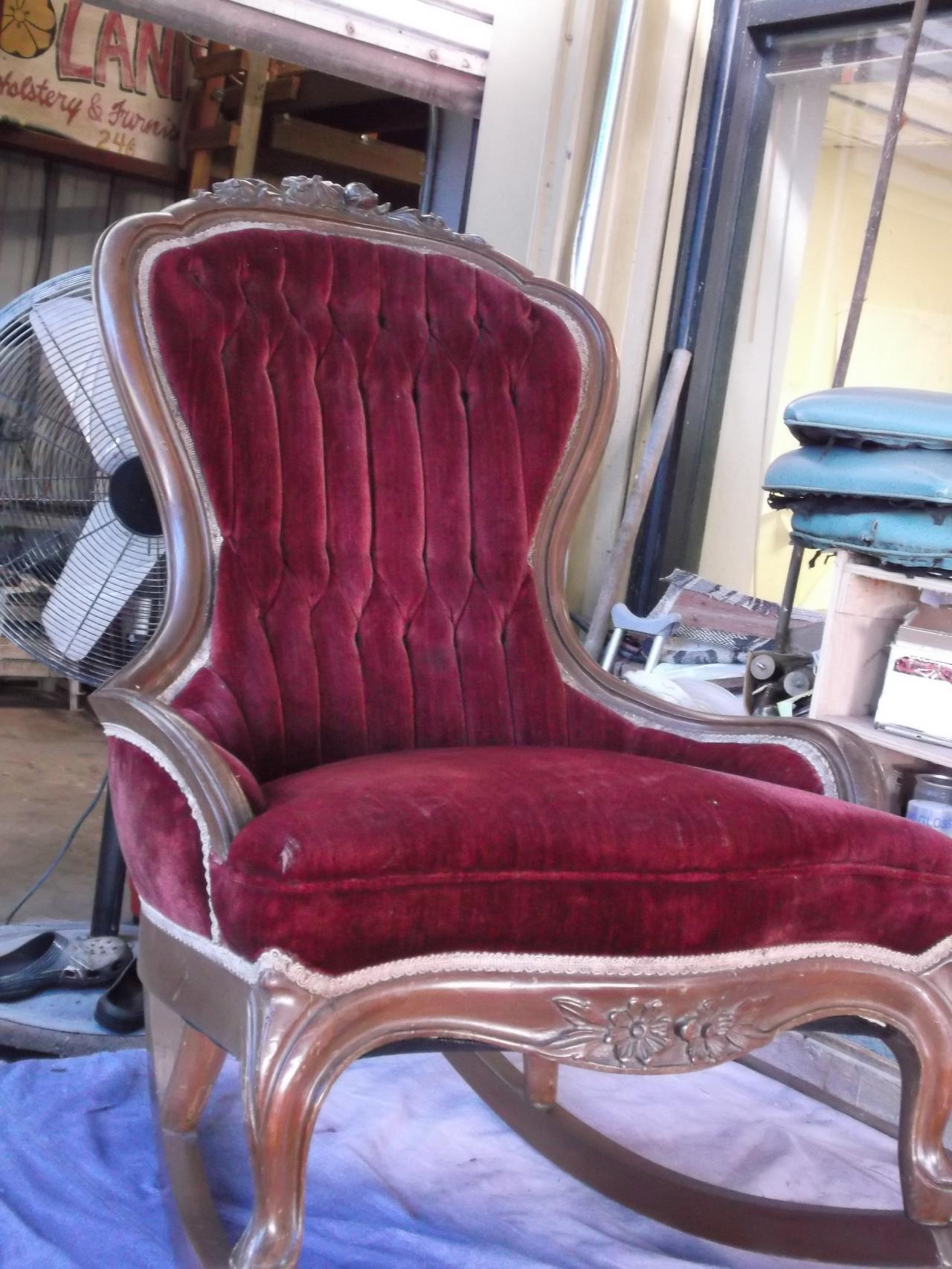 Before was strip was upholsterd back rest & the seat was red small print w/ shell design. The color of the wood was dark wallnut.